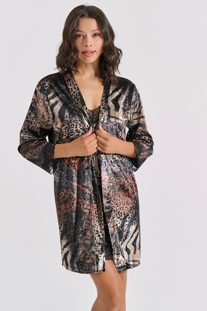 Milena by Paris Χειμερινή Γυναικεία Ρόμπα Τιγρέ 005371-Τιγρέ