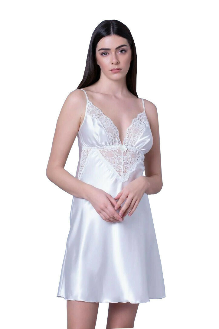 Milena by Paris ιβουάρ σατέν νυχτικό με δαντέλα & string σατέν.