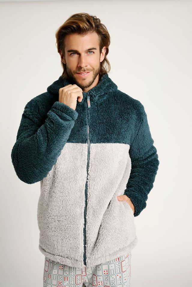 Muydemi Γκρι/Πετρόλ Fleece Κοντή Ανδρική Ρόμπα Με Φερμουάρ.