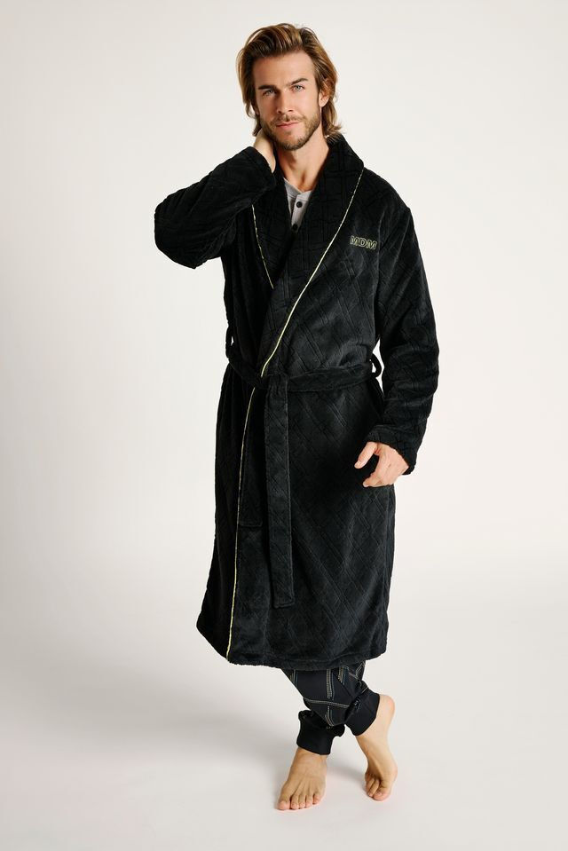 Muydemi Μαύρη Fleece Σταυρωτή Μακριά Ανδρική Ρόμπα.