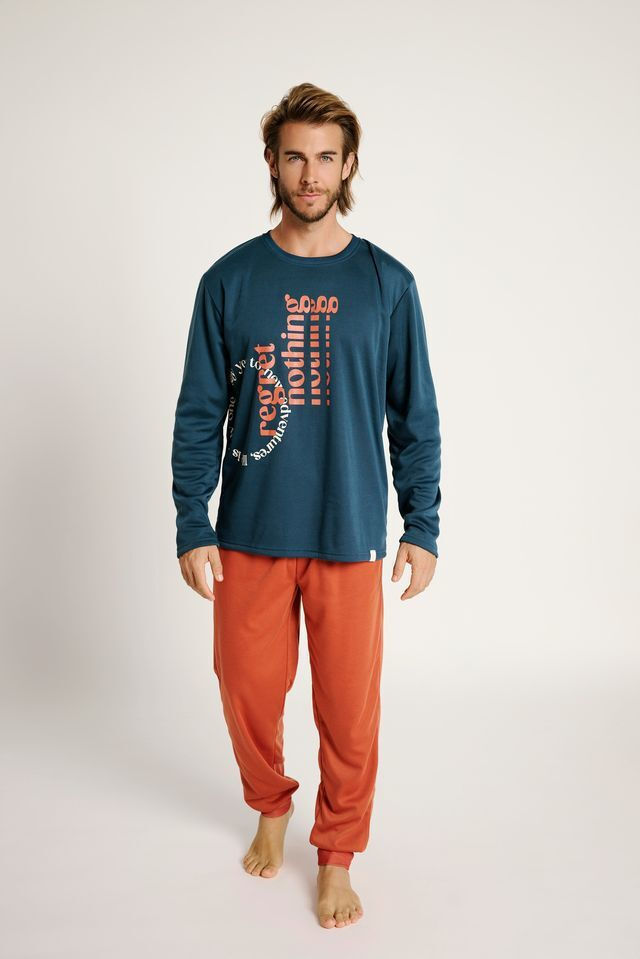 Muydemi Μπλε/Εκάι Ανδρική Πιτζάμα Με Χνούδι Εσωτερικά.