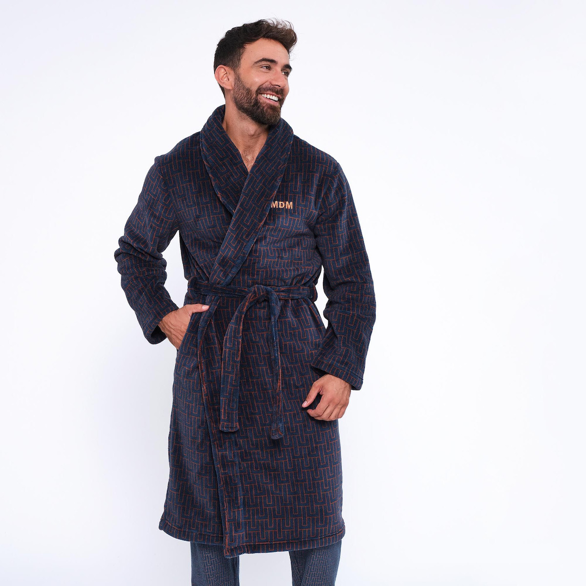 Muydemi Μπλε/Εκάι(Μοτίβο) Μακριά Σταυρωτή Ανδρική Ρόμπα.