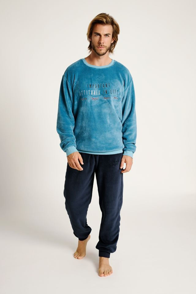 Muydemi Μπλε Fleece Χνουδωτή Ανδρική Πιτζάμα.