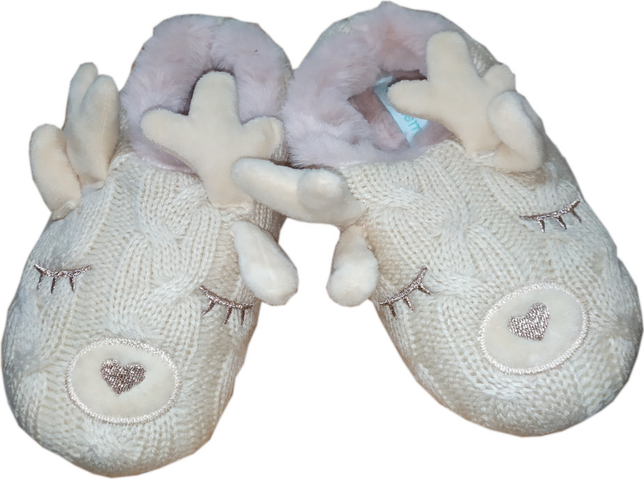 Muydemi Παιδικές παντόφλες κοριτσίστικες Εκρού, με σχέδιο "ταρανδάκι". 616828