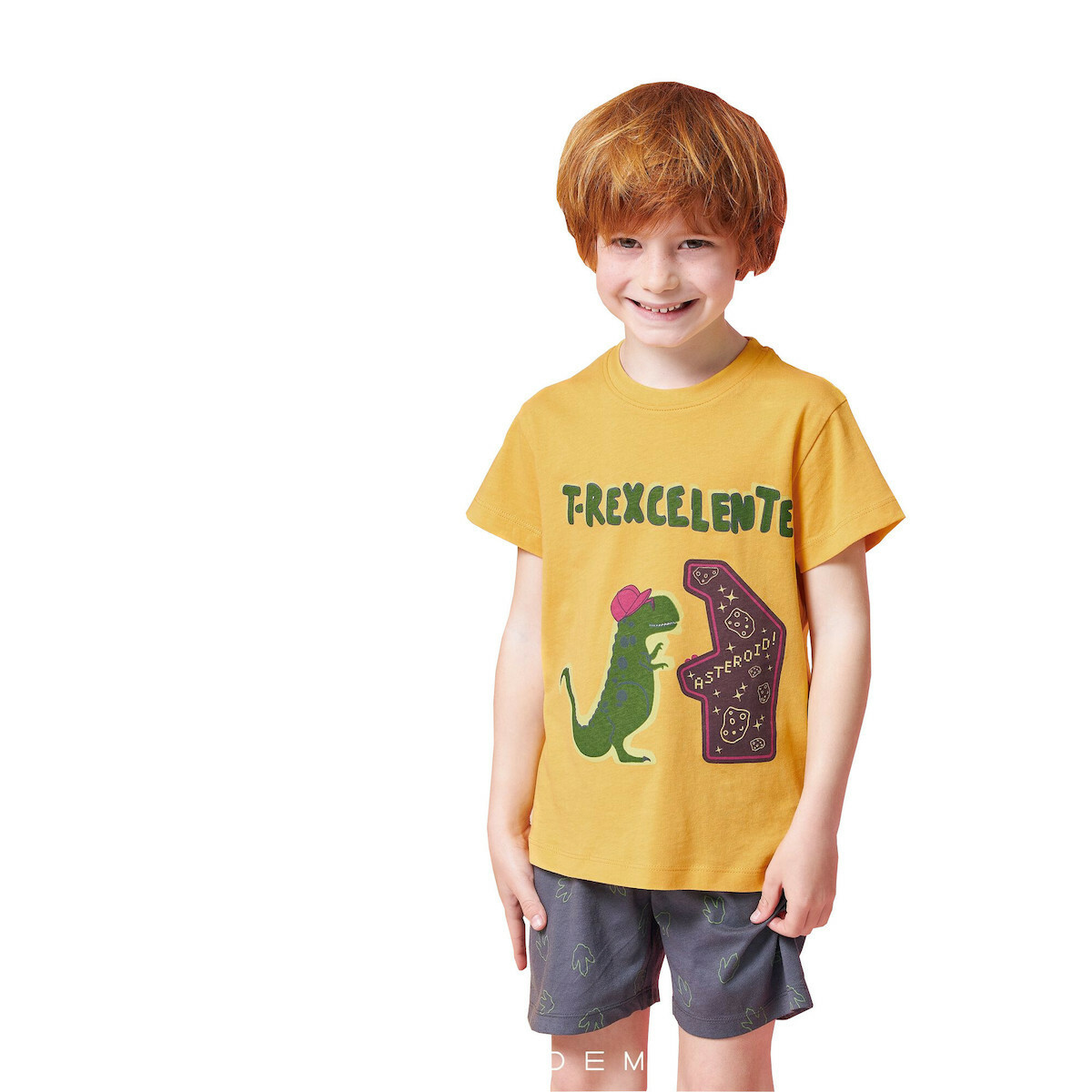 Muydemi βαμβακερή παιδική πιτζάμα μουσταρδί/χακί.