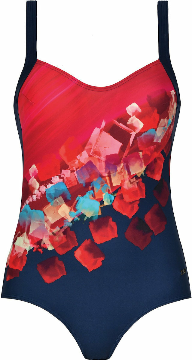 Naturana quick dry ολόσωμο μπλε σκούρο μαγιό με πολύχρωμο σχέδιο μπροστά.