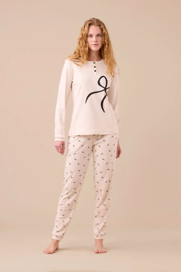 Noidinotte Εκρού Βαμβακερή Γυναικεία Πιτζάμα.