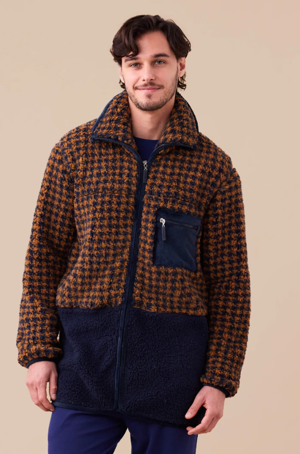 Noidinotte Fleece Κοντό Ανδρικό Ρομπάκι Με Φερμουάρ Μπλε.