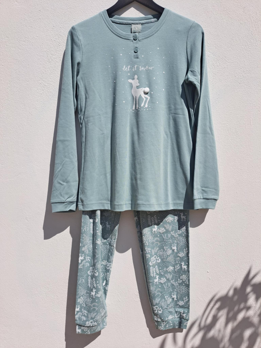 Noidinotte Φυστικί Βαμβακέρη Γυναικεία Πιτζάμα "Let it snow".