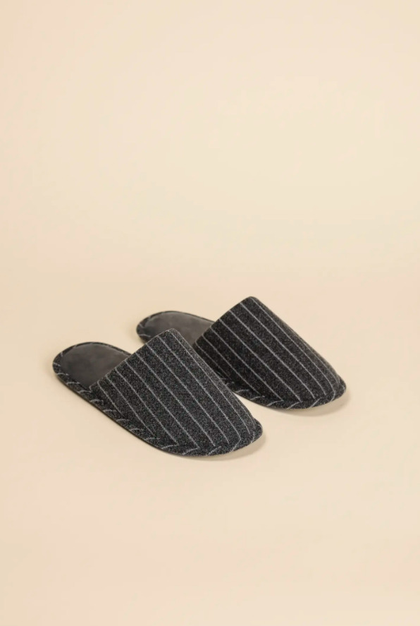 Noidinotte Γκρι Ριγέ Ανδρικές Χειμερινές Παντόφλες.