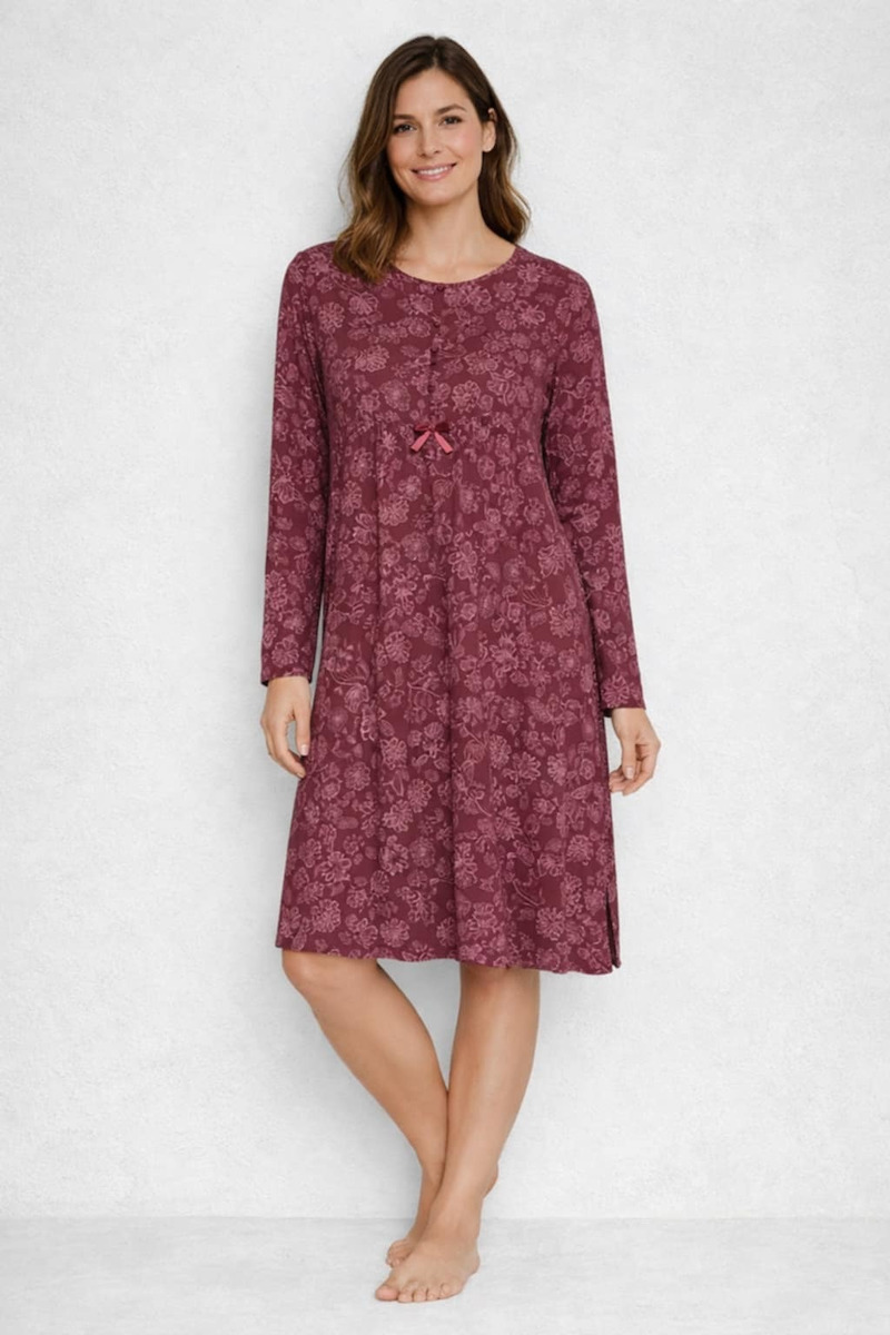 Noidinotte Modal Μπορντό Εμπριμέ Νυχτικό Με 5 Κουμπιά.