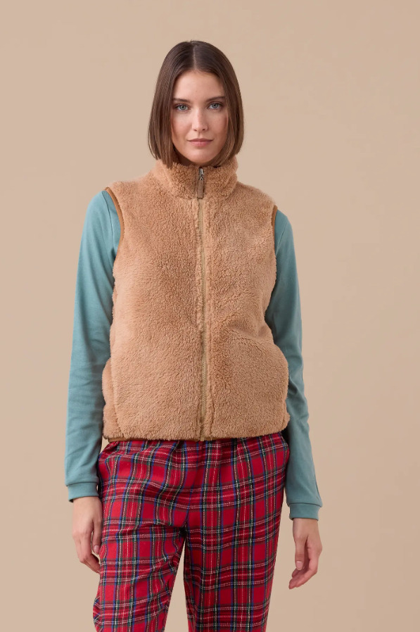 Noidinotte Μπεζ Αμάνικο Γιλέκο Με Φερμουάρ.