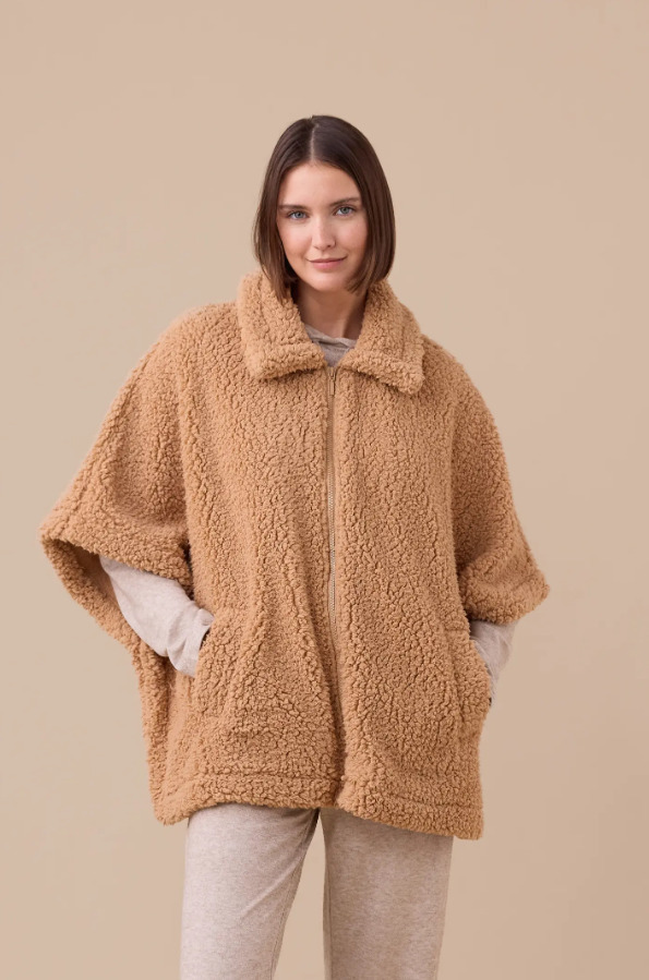 Noidinotte Μπεζ Γυναικεία Ρόμπα/Πόντσο Με Φερμουάρ.
