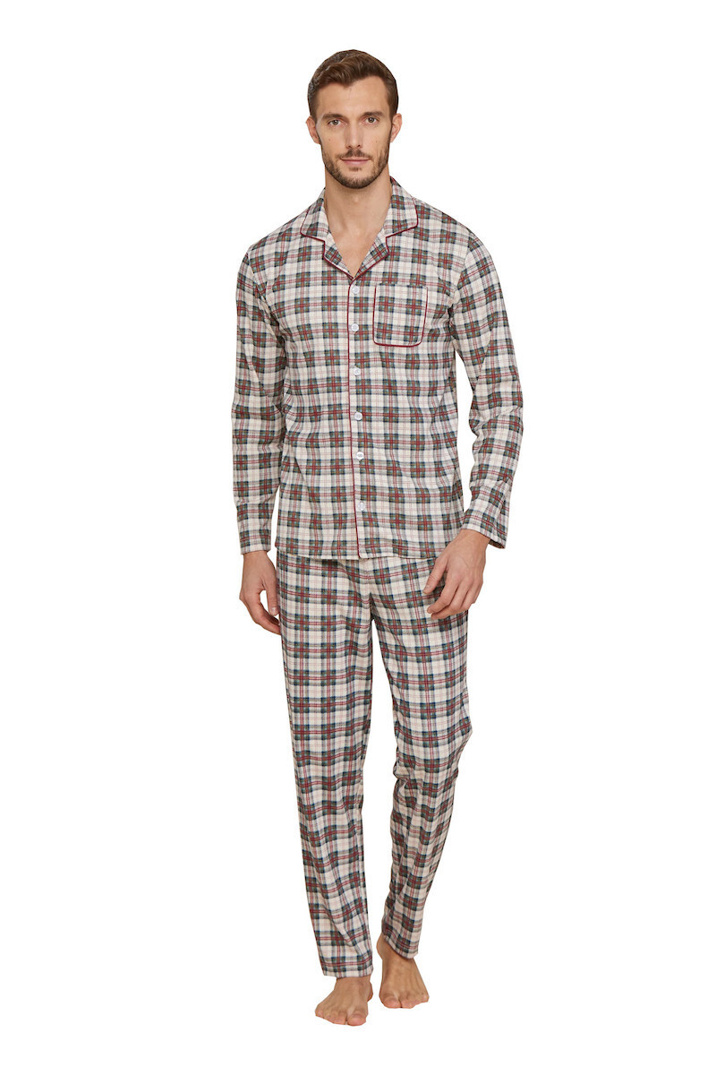 Noidinotte μπεζ καρό ανδρική κουμπωτή πιτζάμα.