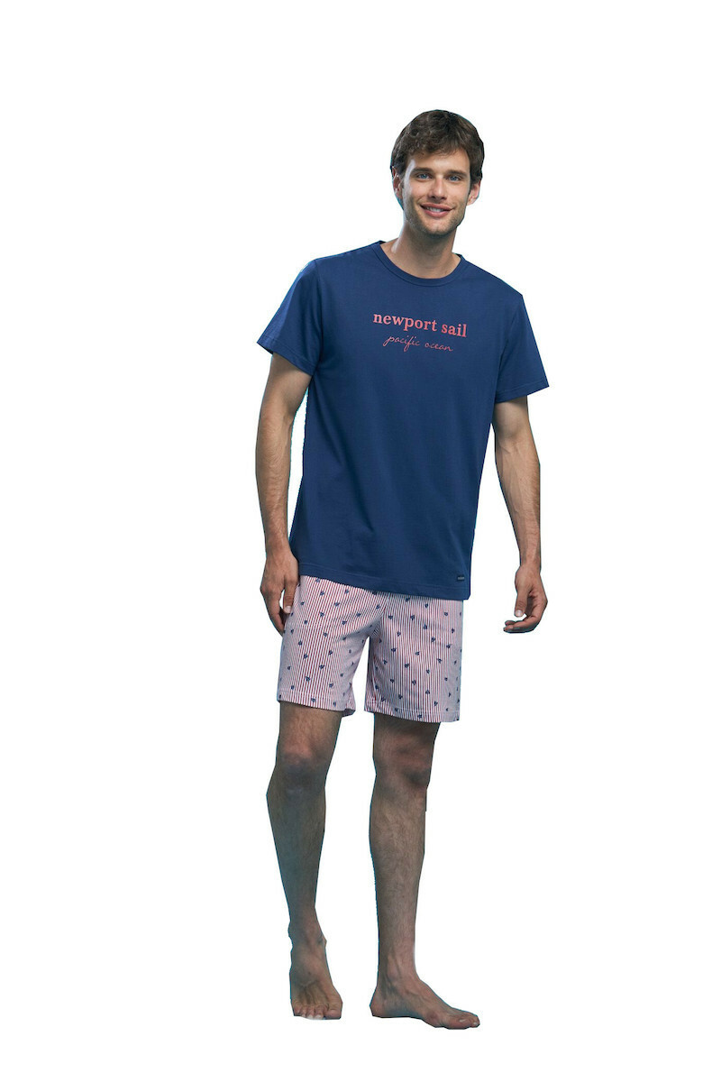 Noidinotte μπλε κοντομάνικι ανδρική πιτζάμα με άσπρο/κόκκινο ριγέ σορτς.