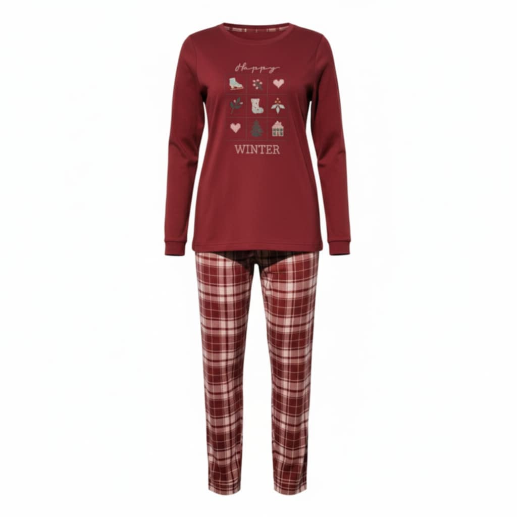 Noidinotte Μπορντό Καρό Βαμβακερή Γυναικεία Πιτζάμα.