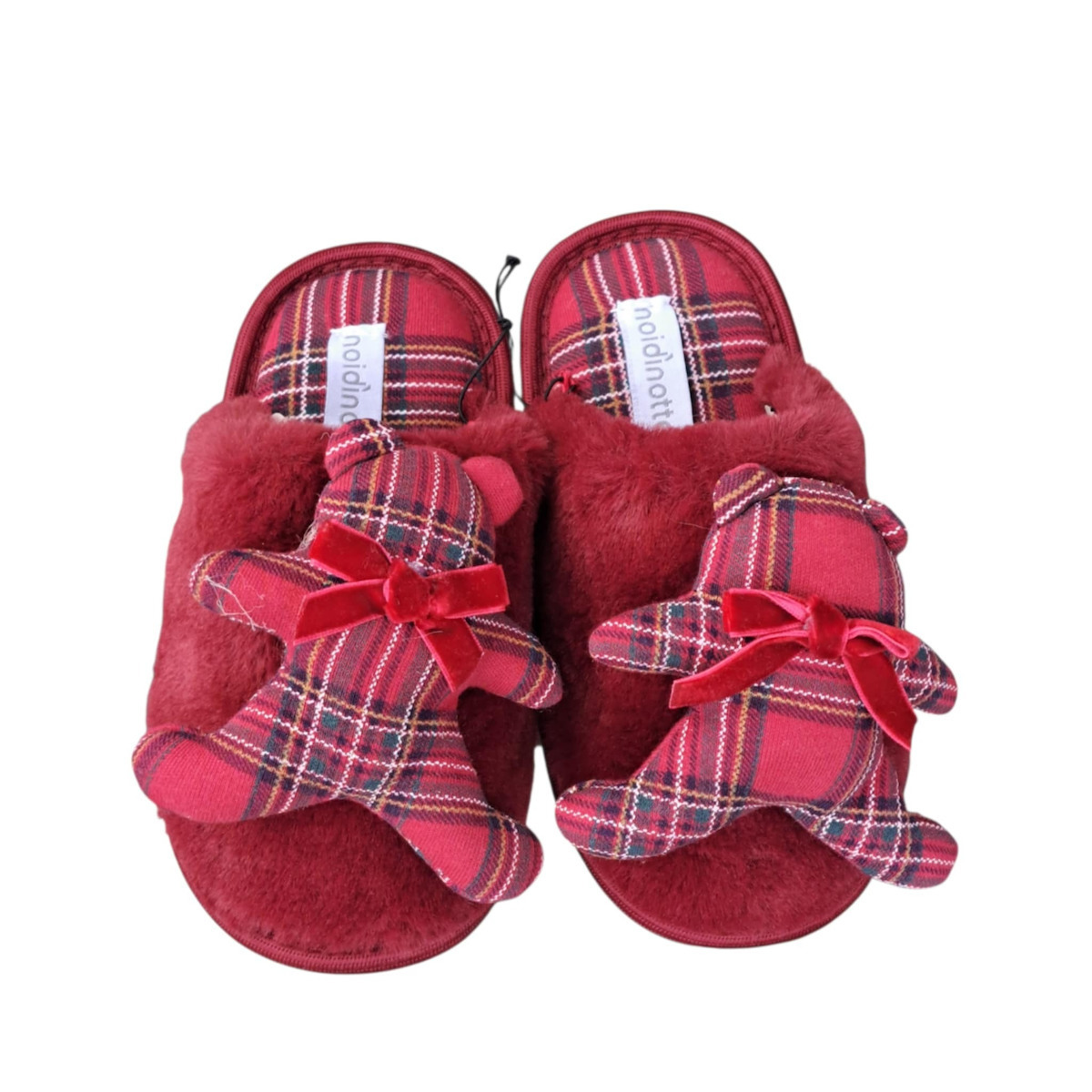 Noidinotte Μπορντό Παιδικές Παντόφλες Με 3D Καρό Αρκουδάκι. )