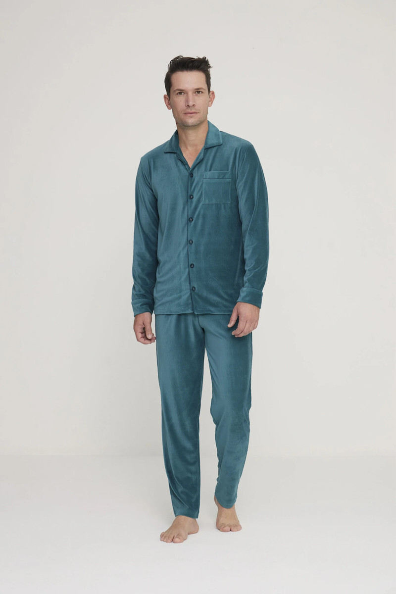 Noidinotte Πετρόλ Βελούδινη Rib Κουμπωτή Ανδρική Πιτζάμα.