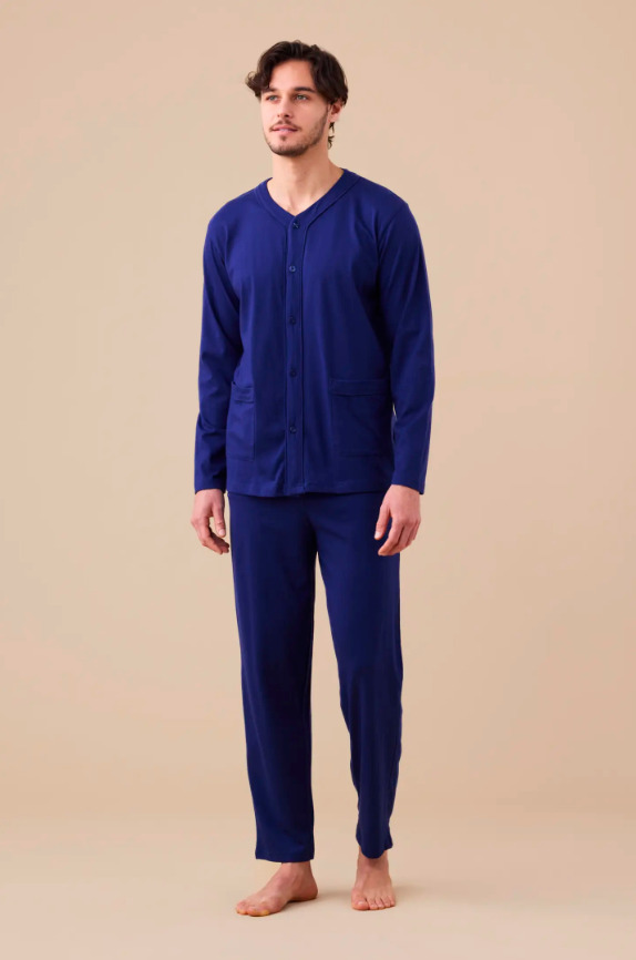 Noidinotte Plus Size Μπλε Ανδρική Πιτζάμα Κουμπωτή Βαμβακερή.