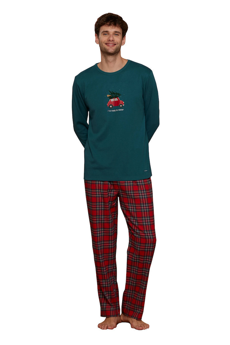 Noidinotte πράσινη/κόκκινη καρό βαμβακερή ανδρική πιτζάμα.