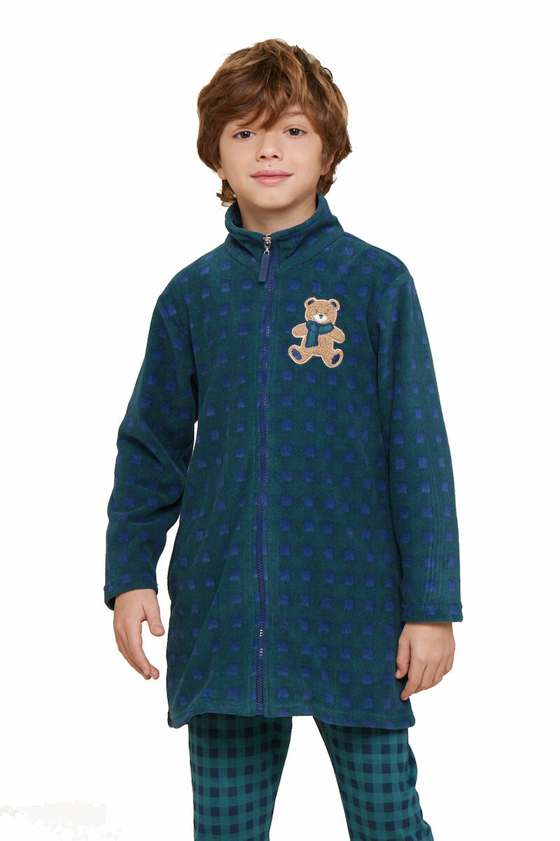 Noidinotte πράσινη/μπλε καρό fleece παιδική ρόμπα με φερμουάρ.