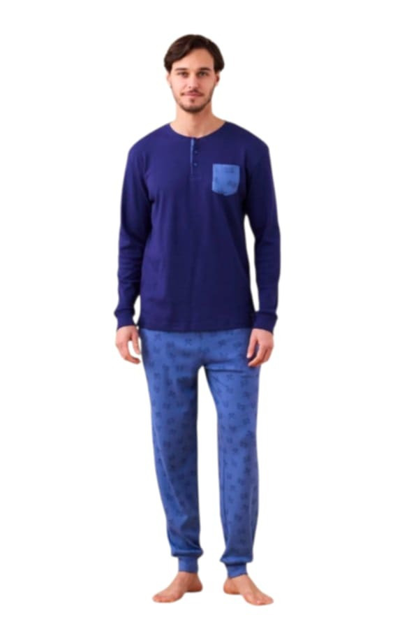 Noidinotte Βαμβακερή Ανδρική Πιτζάμα Μπλε/Ραφ.