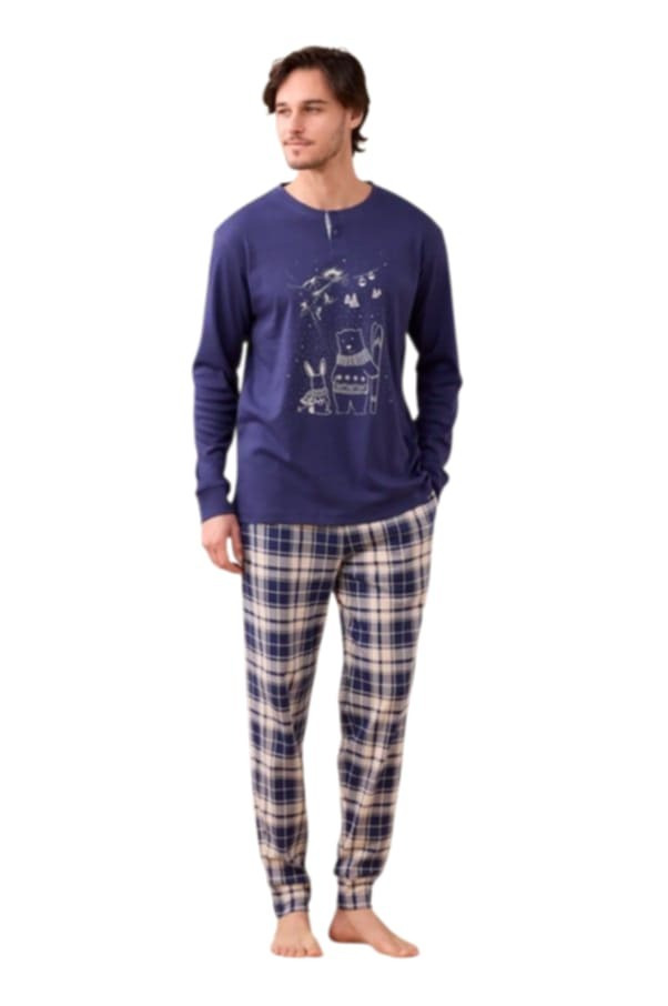 Noidinotte Βαμβακερή Μπλε/Καρό Ανδρική Πιτζάμα.