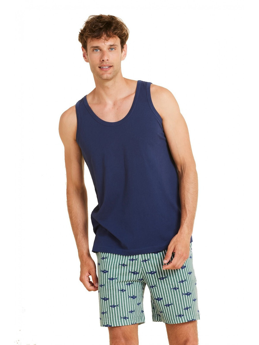 Noidinotte βαμβακερή μπλε/πράσινη αμάνικη ανδρική πιτζάμα.