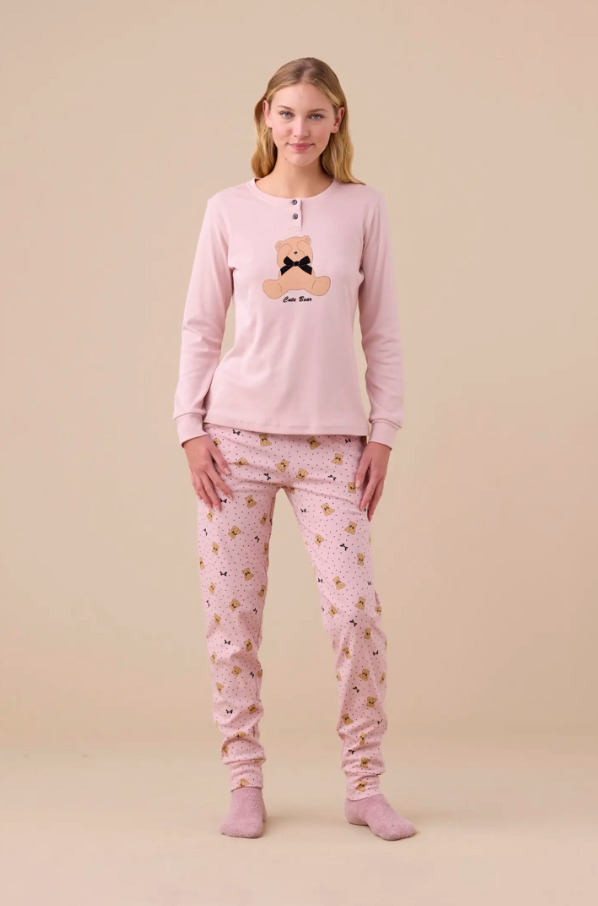 Noidinotte Βαμβακερή Ροζ Γυναικεία Πιτζάμα.