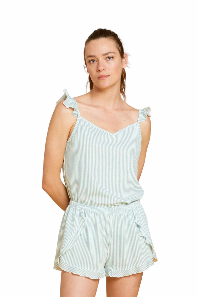 Noidinotte βαμβακερό ριγέ λευκό/βεραμάν babydoll.