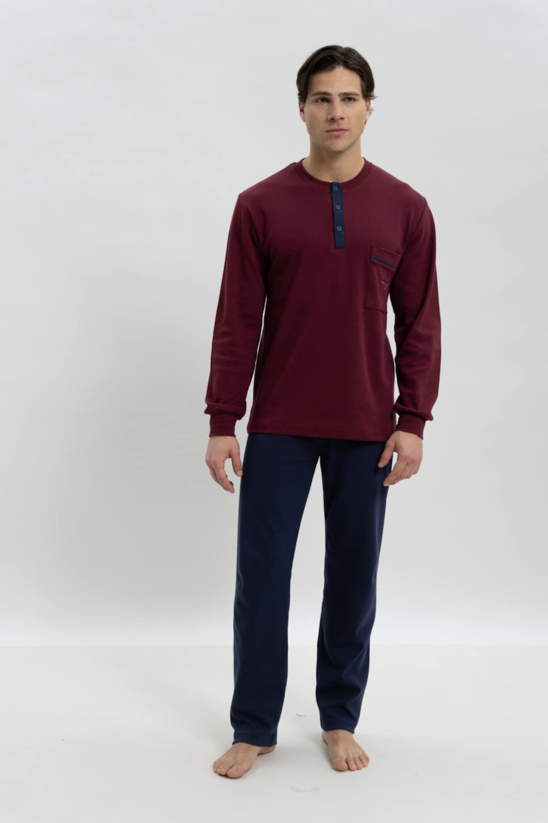 Οδυσσέυ Βαμβακερή Μπορντό/Μπλε Ανδρική Πιτζάμα.