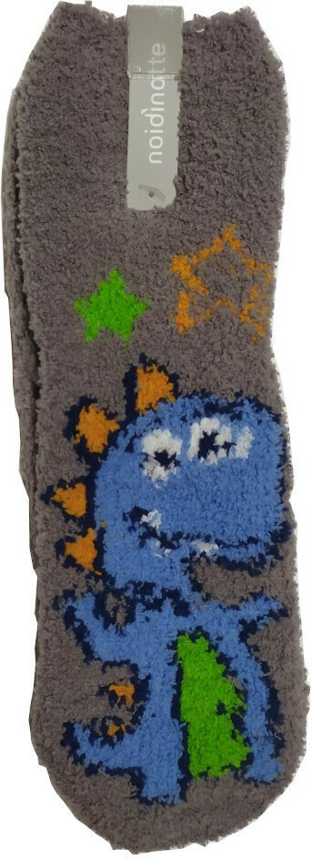 Παιδικές κάλτσες φλις χνουδωτές. Γκρι με σχέδιο και πατουσάκια σιλικόνης από κάτω.