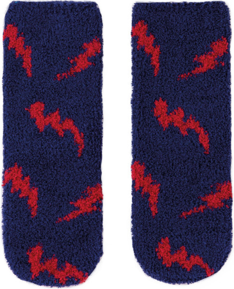 Παιδική κάλτσα φλις χνουδωτή μπλε με σχέδιο κόκκινους κεραυνούς. Πατουσάκια σιλικόνης από κάτω.
