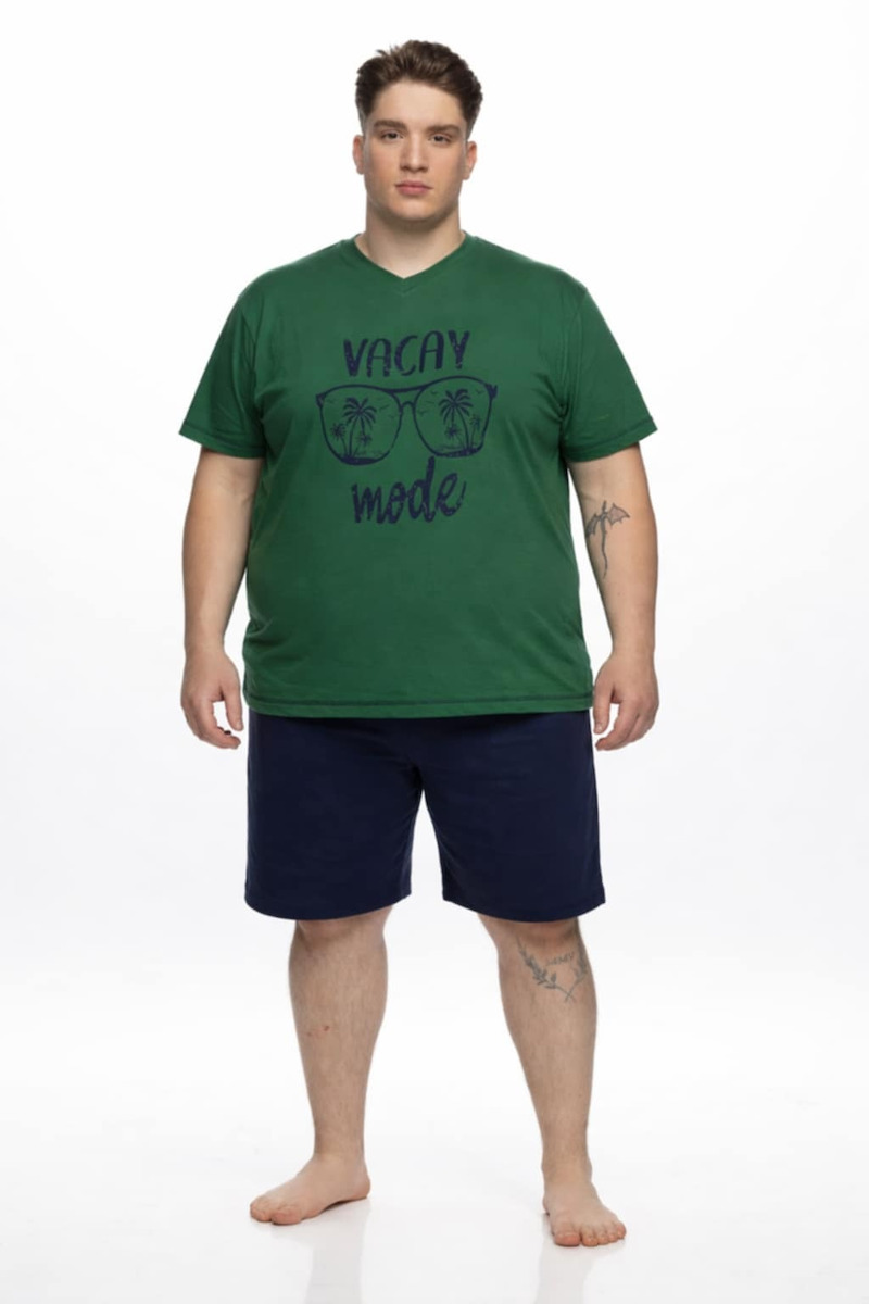 Plus Size Galaxy Βαμβακερή Ανδρική Πιτζάμα Πράσινη/Μπλε.