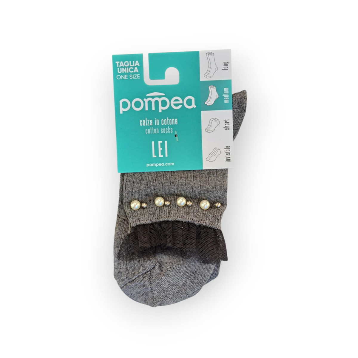 Pompea Βαμβακερές Ανθρακί Γυναικείες Κάλτσες Με Τούλι & Πέρλες.
