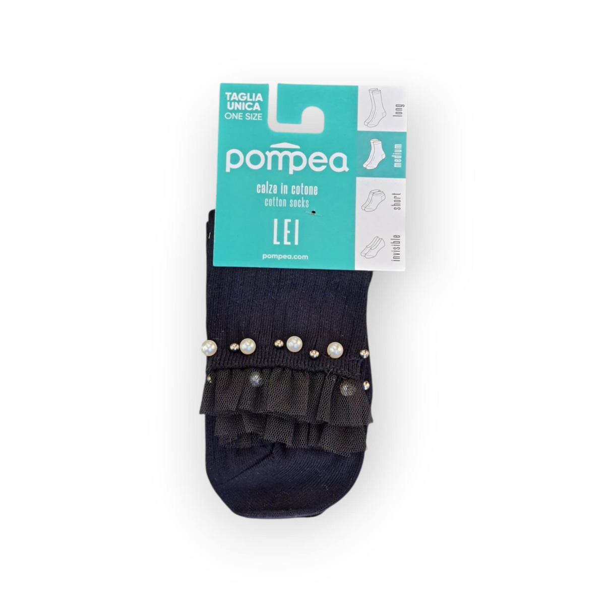Pompea Βαμβακερές Blue/Black Γυναικείες Κάλτσες Με Τούλι & Πέρλες.
