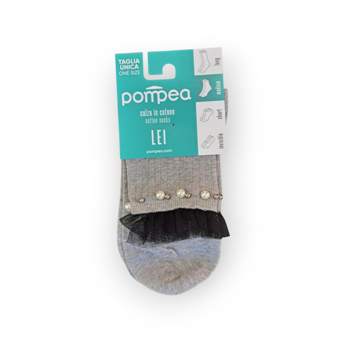 Pompea Βαμβακερές Γκρι Γυναικείες Κάλτσες Με Τούλι & Πέρλες.
