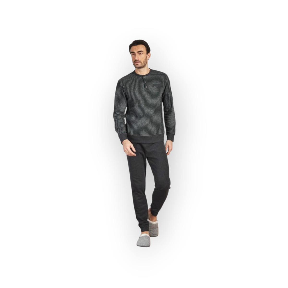 Qbo Ανδρικές Ζεστές Χειμερινές Πιτζάμες Ανθρακί/Πράσινο.