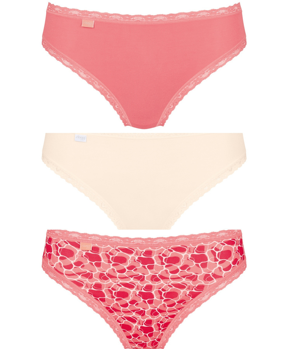 Sloggi Tai Βαμβακερά Γυναικεία Slip 3Pack με Δαντέλα Ροζ 10197990-M003