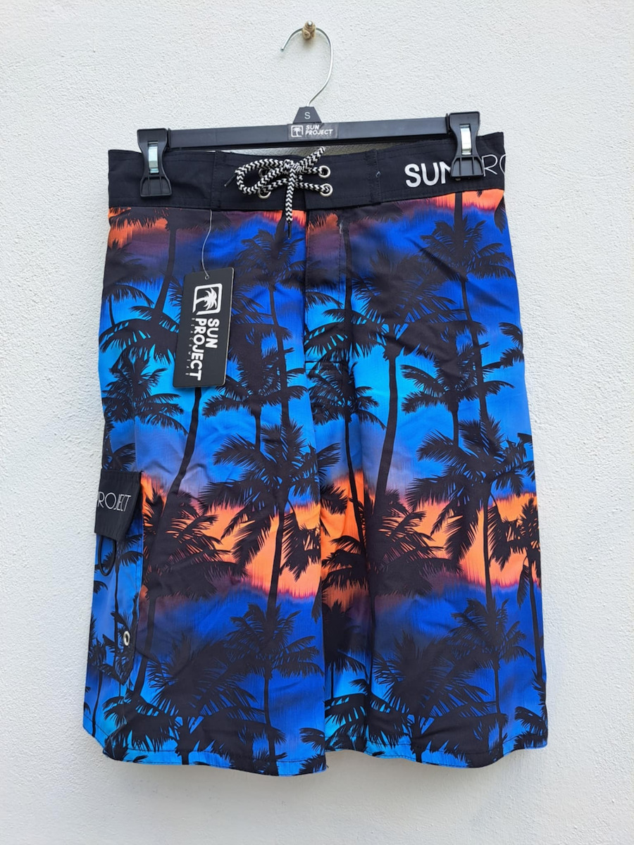 Sun Project Μακρύ Μαύρο Εμπριμέ Ανδρικό Μαγιό Με Φοίνικες.