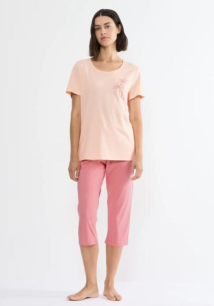 Triumph Βαμβακερή Γυναικεία Κοντομάνικη Πιτζάμα Με Κάπρι Σομόν/Κοραλί.