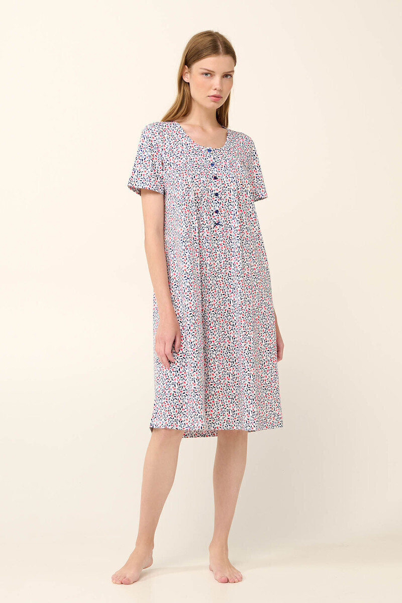 Vamp Καλοκαιρινό Βαμβακερό Γυναικείο Νυχτικό Blue Peony 22302
