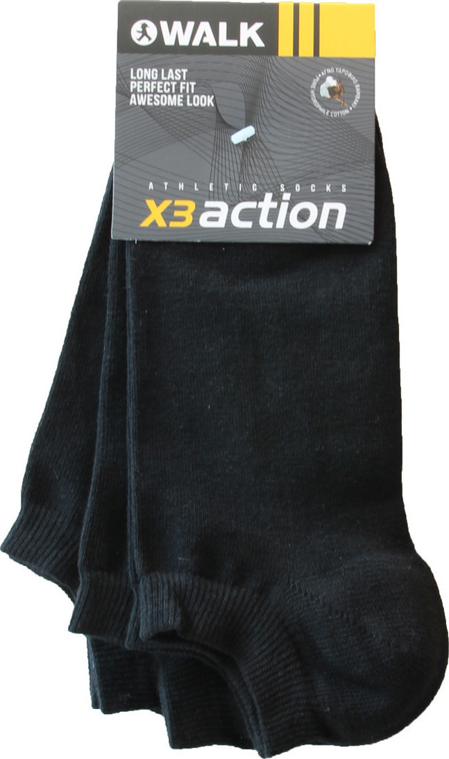 Walk V20 Ανδρικές Μονόχρωμες Κάλτσες Μαύρες 3Pack