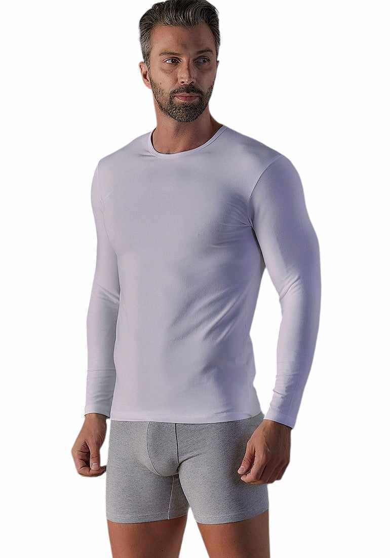 Wrap Λευκή Μακρυμάνικη Ανδρική Φανέλα Λαιμόκοψη.