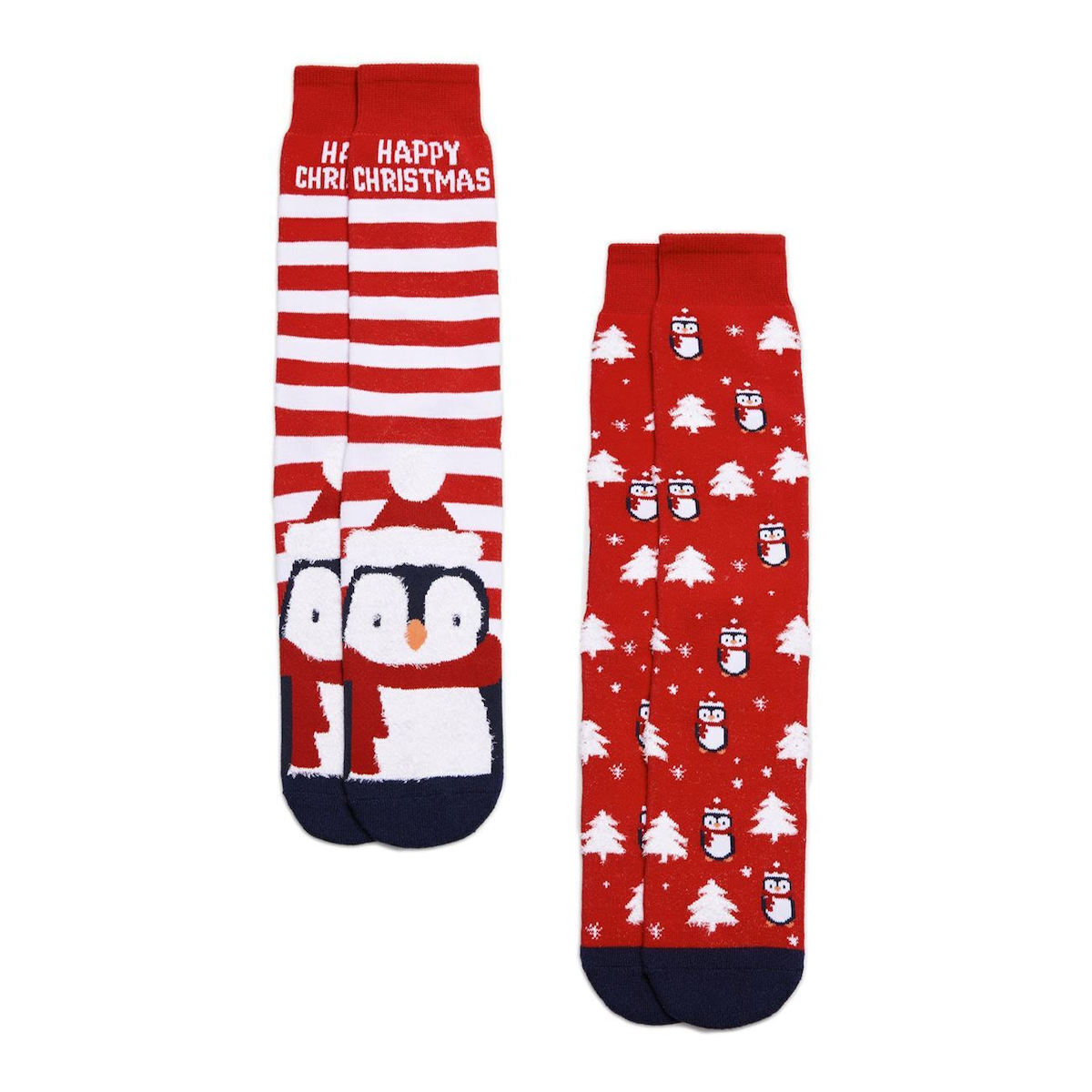 Ysabel Mora Ανδρικές Κάλτσες Αντιολισθητικές Happy Xmas 2 Ζεύγη Κόκκινο