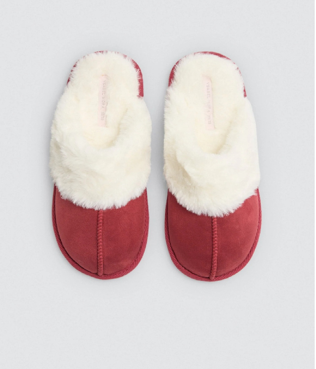 Ysabel Mora Χειμερινές Γυναικείες Παντόφλες με Γούνα Μπορντό 14174