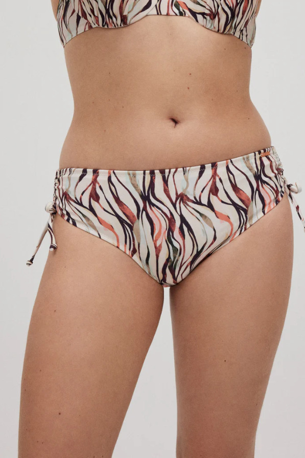 Ysabel Mora Εκρού Εμπριμέ Tai Slip Μαγιό Με Πλαϊνή Σούρα.