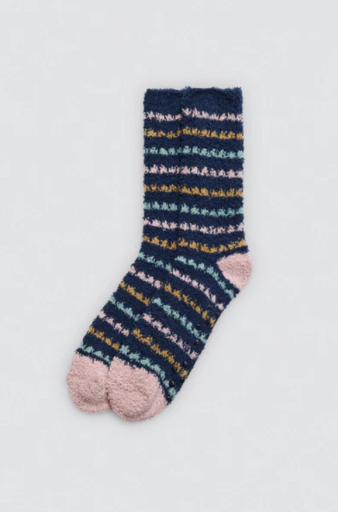 Ysabel Mora Fleece Χνουδωτές Γυναικείες Κάλτσες Ριγέ Μπλε Με Βεντουζάκια Σιλικόνης.