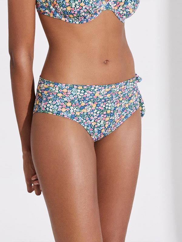 Ysabel Mora φλοράλ πολύχρωμο ψηλόμεσο μαγιό σλιπ, με φιόγκο στο πλάι.