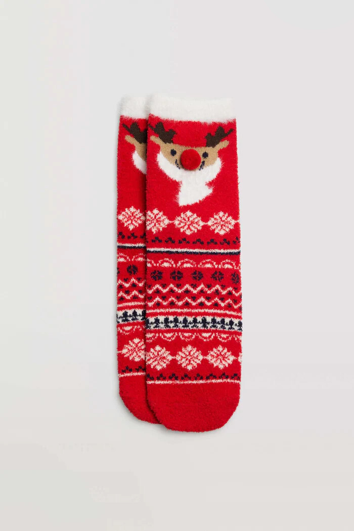 Ysabel Mora Κόκκινες Χριστουγεννιάτικες Παιδικές Κάλτσες Με Βεντουζάκια Σιλικόνης.